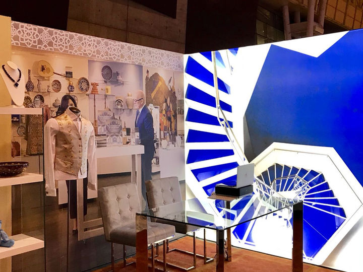 In 2017, His Highness the Aga Khan celebrated his Diamond Jubilee. The Aga Khan Museum celebrated with an exhibition in Lisbon, Portugal. I had the opportunity to design this exhibition. A 40' x 30' space that included large panels recreating the Museum experience and collections, large pillars detailing the events and programming, as well as a full retail shop. The exhibition hosted thousands of guests, offering a glimpse of the Museum, encouraging membership and patronage.